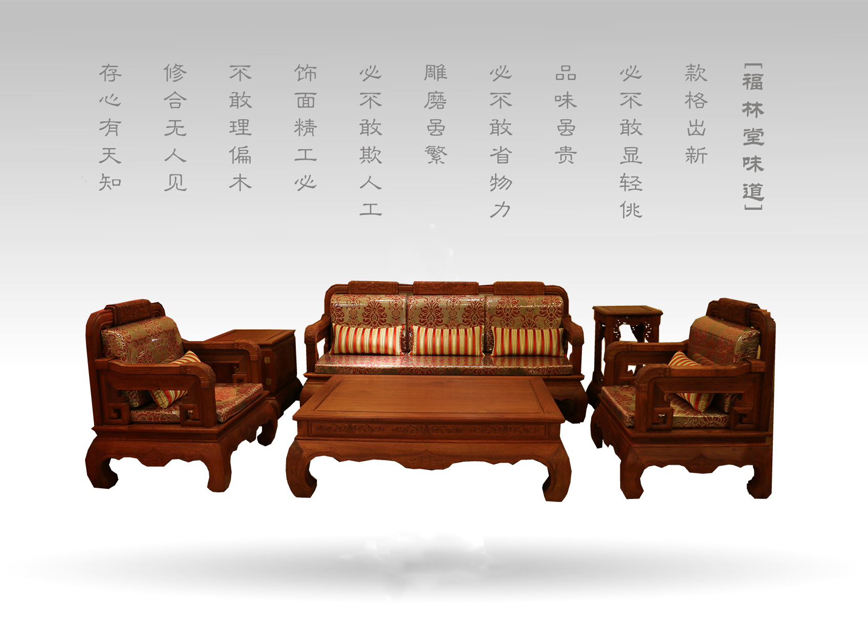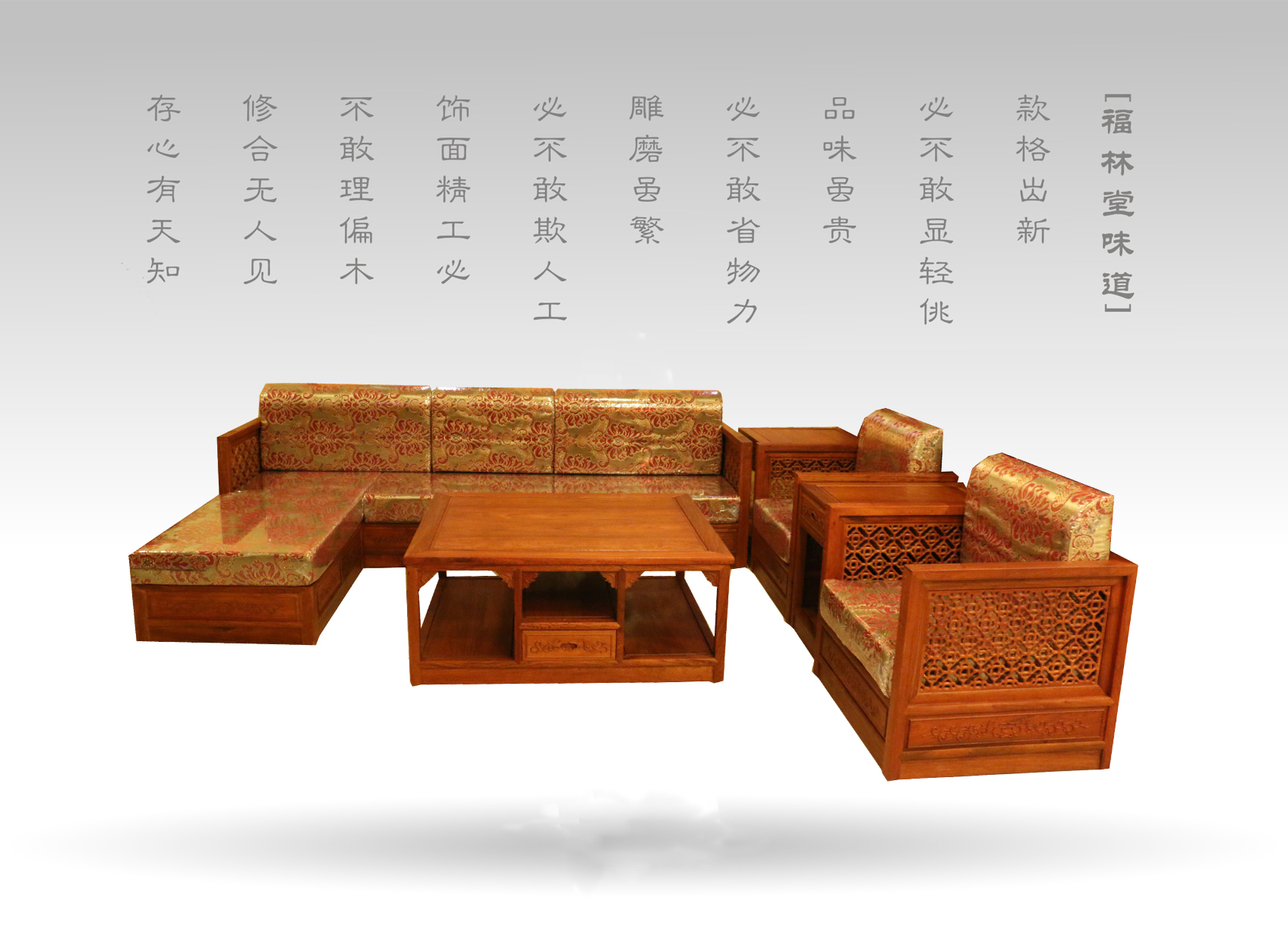 沙發,一件適用于現代居室陳設、符合現代起居習慣的廳堂必備家具;紅木,則是從明清就開始盛行的家具用材,紅木沙發乃是兩者的結合,它既滿足了時代對起居生活的新要求,又是對傳統工藝文化的繼承,可說是古典家具的延續,也是紅木家具發展的必然產物。