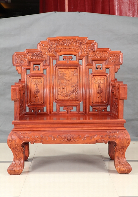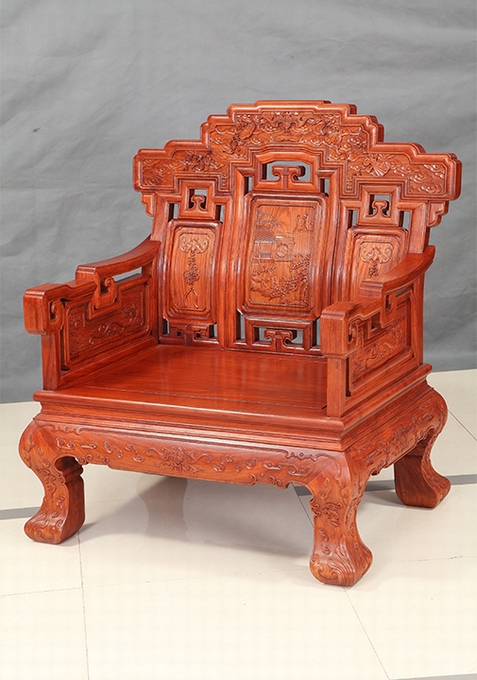 而今天,我們福林堂紅木要為大家介紹的這一款沙發——祥云寶座沙發,即是這樣一款以之祥云為主要裝飾圖案,附之以蝙蝠、銅錢、磬(Qing)、八寶、行龍紋、魚紋、如意等多種象征寓意紋飾組合而成,另外沙發整體之外觀仿照古代帝王之寶座外觀設計,顯得十分地氣派張揚與尊貴,十分適合給那些身份及地位都十分顯赫、重要的人物使用,是一座尊貴的席位,在家中擺放之就好比如置入一座寶座一番,給人以一種沉穩、大氣、威嚴之感受,而這一類風格之家居也正是當下仿古式紅木家具中應用十分廣泛的一類,只不過它現在已經不再顯得那么高高在上的了,而是可以配之以高幾、角幾與大平幾一起使用,感受上更覺舒適平和自然,成為一處可以與普通老百姓一起相陪作伴的普通家居陳設用品。