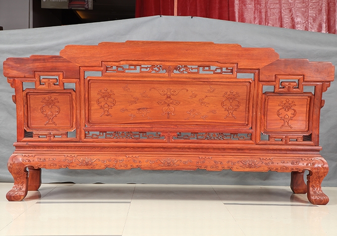 云,它是中國圖案中十分重要的裝飾元素之一。而古人又都常在銅器、木刻、壁畫以及服飾上創造出了各種層出不窮的云形圖案。中國意匠的云形,不僅形象豐富生動,而且更富有中國圖案獨有的意境美,那飄急繽紛的流云伴隨著神仙、神禽、寶物等,猶如在你眼前呈現出的一幅笙歌悠揚、騰云駕霧、如縷仙境一般的神域氛圍感受。紅木家具而那些被古人憑之以色彩可以用來察卜吉兇征兆的五彩繽紛的云,也被稱之為祥云,在裝飾意義上多用它來呈現祥瑞福壽之寄寓,以示祝福。