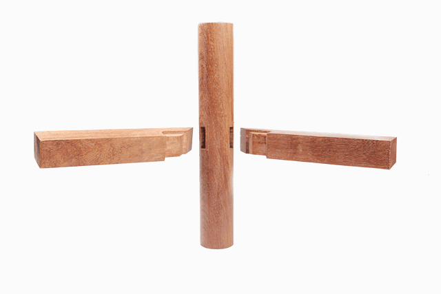 首先,榫卯結(jié)構(gòu)是榫和卯的結(jié)合,是木件之間多與少、高與低、長與短之間的巧妙組合,這種組合可有效地限制木件之間向各個方向的扭動。而鐵釘連接就做不到。好比,用鐵釘將兩根木棖做T字型組合,豎棖與橫棖很輕易被扭曲而改變角度,而用榫卯結(jié)合,就不會被扭曲。